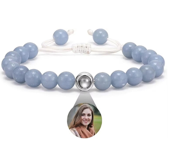 定制照片手链个性化蓝色水晶串珠可调绳魅力饰品时尚情侣友谊礼品浪漫